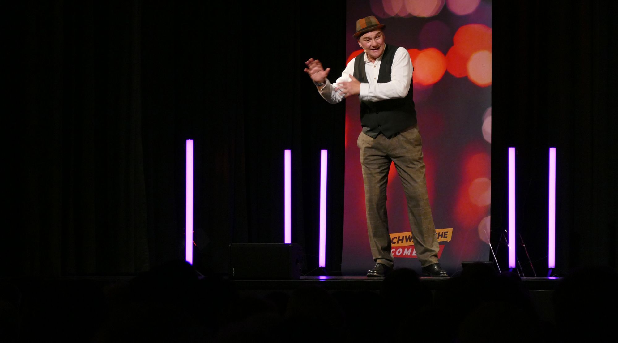 Das Gleiche gilt natürlich auch, wenn Sie einen ganzen Abend mit Ihrer Belegschaft planen. Vielleicht ein Mehr-Gänge-Menü als Comedy-Dinner-Show zur Weihnachtsfeier, Firmenjubiläum, Mitarbeiterdank? Leibssle kann sich gut vorstellen, Ihnen die Zeit zwischen den Gängen mit fröhlichen Gedanken zu verkürzen.
